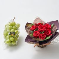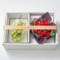 【送料込】花と実の極み きらら星 岡山県産シャインマスカット晴王&薔薇アレンジメント ルージュ《FMS-01D》