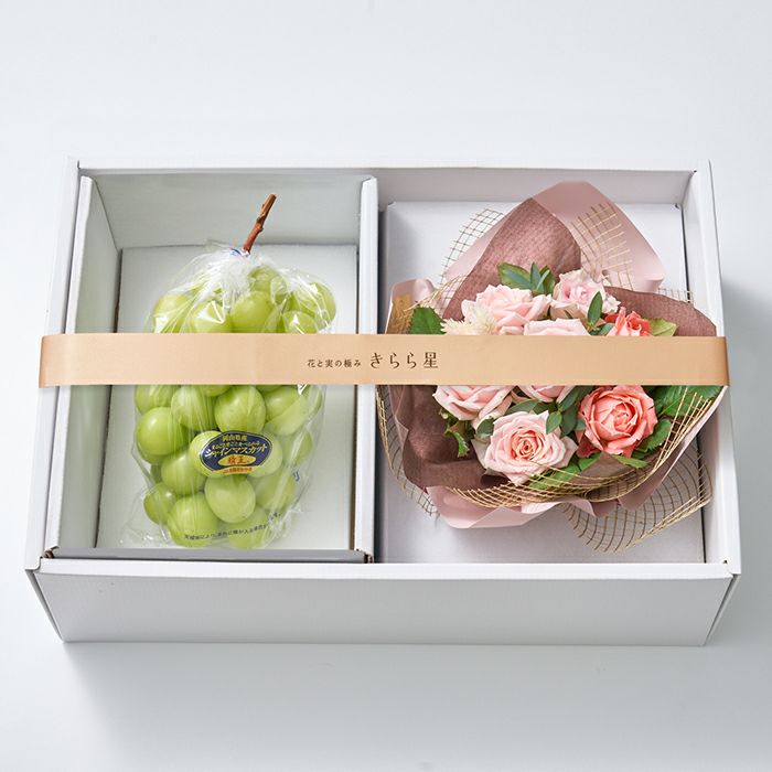 【送料込】花と実の極み きらら星 岡山県産シャインマスカット晴王&薔薇アレンジメント スイート《FMS-05D》