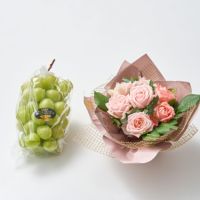 山口県産バラのアレンジメント×1、岡山県産シャインマスカット晴王×1、商品紹介・花のお手入れ・シャインマスカットのしおり×各1
