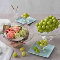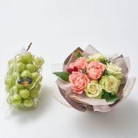 山口県柳井市に店を構えるフルーツギフト&パーラー ホシフルーツと、同じく柳井市で約3,600坪の農園を所有しバラを育てるホシファームのコラボブランド品です。フルーツのプロが厳選するシャインマスカット「晴王」と、摘みたての新鮮なバラのアレンジメントをお届けします。