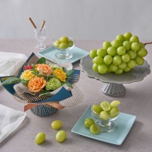 【送料込】花と実の極み きらら星 岡山県産シャインマスカット晴王&薔薇アレンジメントパッション《FMS-04D》のレビューを書く